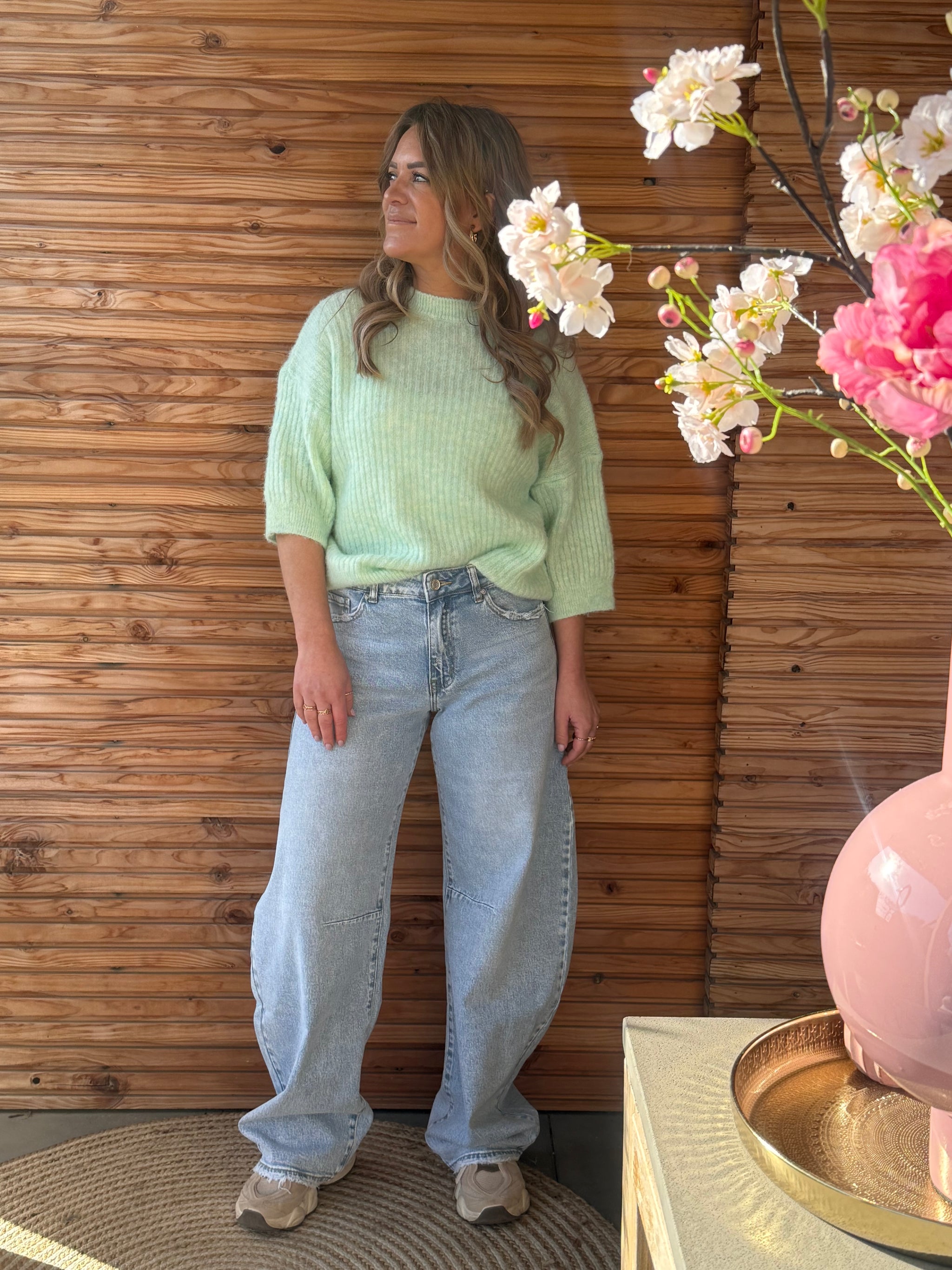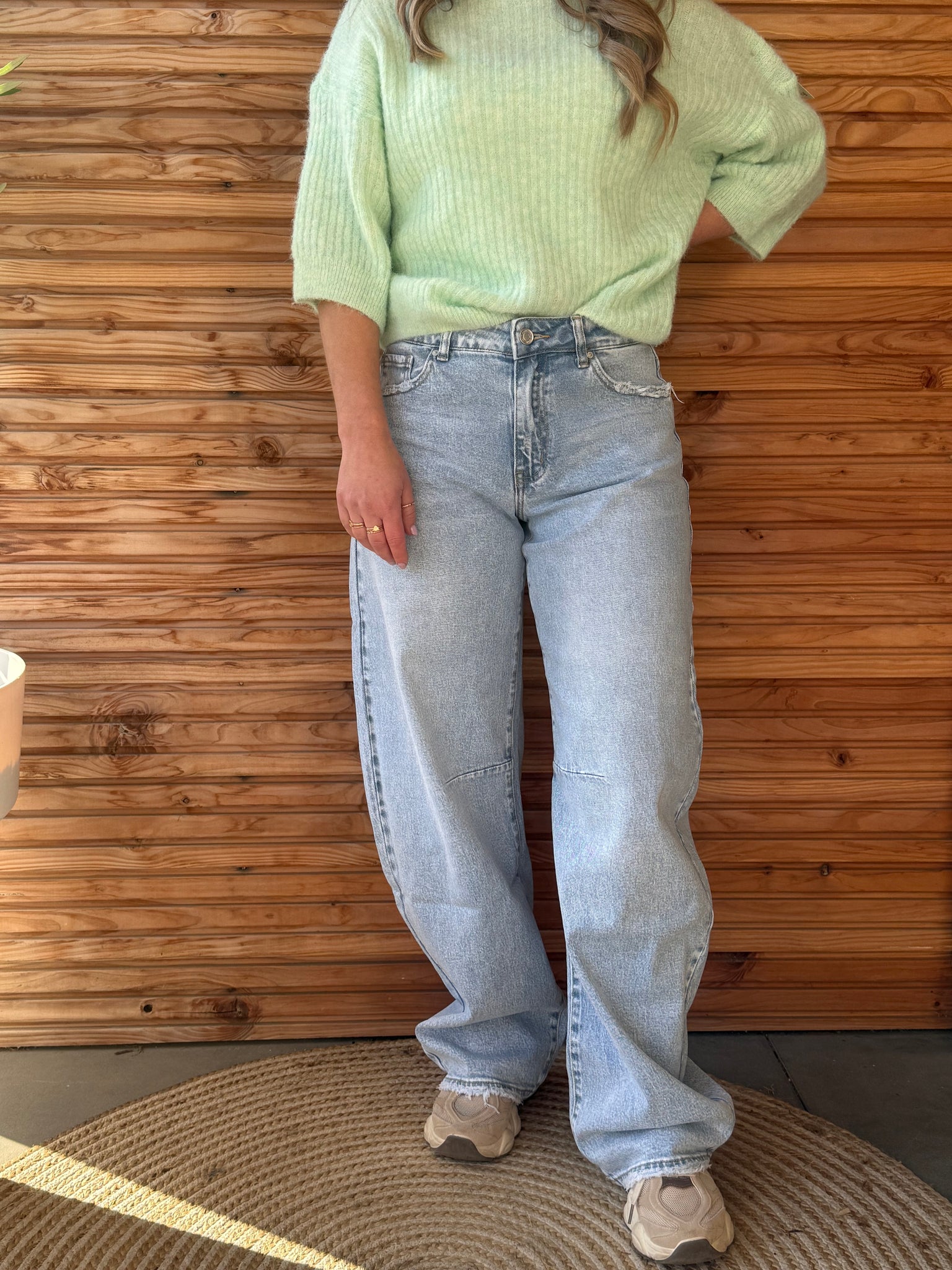 Deze beauty zit high waisted (lees: snatched waist vibes), sluit mooi aan bij je taille en loopt uit in die barrel fit.