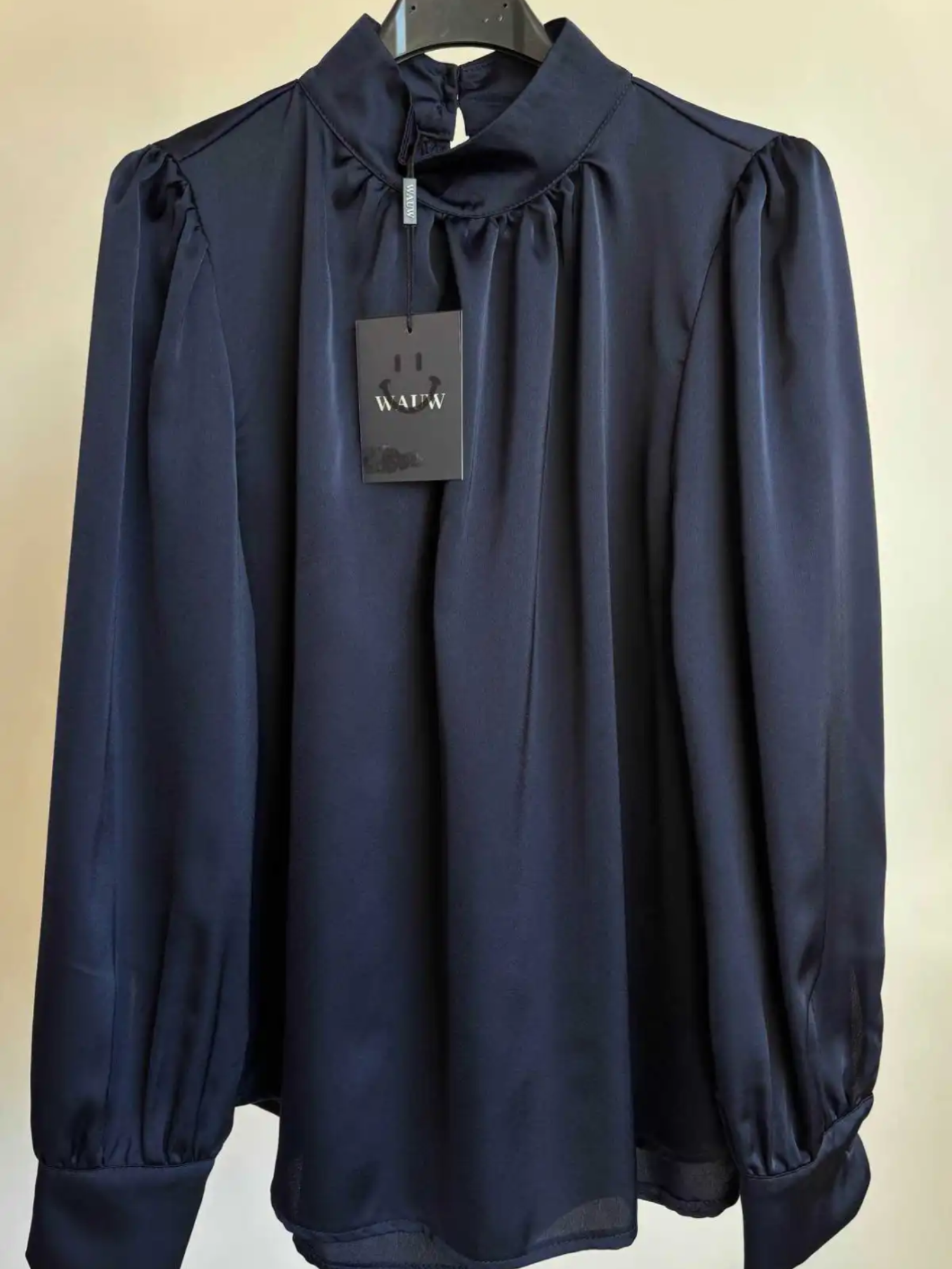 De Classy High Blouse is een elegante musthave met een zachte satijnglans en stijlvolle hoge hals. Tijdloos, vrouwelijk en perfect te combineren.